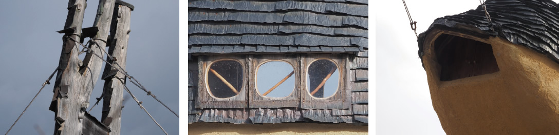 始めはその形状に驚き、歓声をあげながらあちこちから眺めまわすのだが、やがてその特徴的な素材や収まりのユニークさにため息をつく。手でたたいて曲げた銅板の屋根、泥を塗った船底、ジブリ風の煙突や窓。