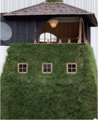 〇土、石、木、草、樹皮、紙といった自然由来の材料を使う。それも自然本来の不均質や偶然や風化を生かして使う。しかし、屋根を茅や樹皮で葺くとコストが高くなりすぎるから、自然素材と合う銅板を使う。