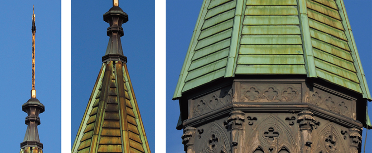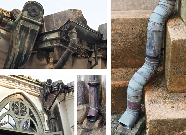 建物に使用された銅板は、塔の屋根と瓦葺き屋根の樋だけである。しかし鐘楼の段葺き銅板屋根は、厚みの有る段葺きで丁寧に施工されている。また樋のほうも施設の関係者によると、台風の度に出入りの板金職が手直しをしているそうだ。どちらも丁寧な仕事だ。