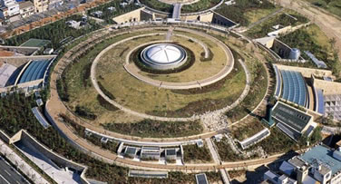 複雑な三次元形状のドーム型や湾曲型など多様なデザインの屋根にも自由に対応できます。被膜面が表に現れる(1)露出工法と、土などで覆われる(2)非露出工法があります。